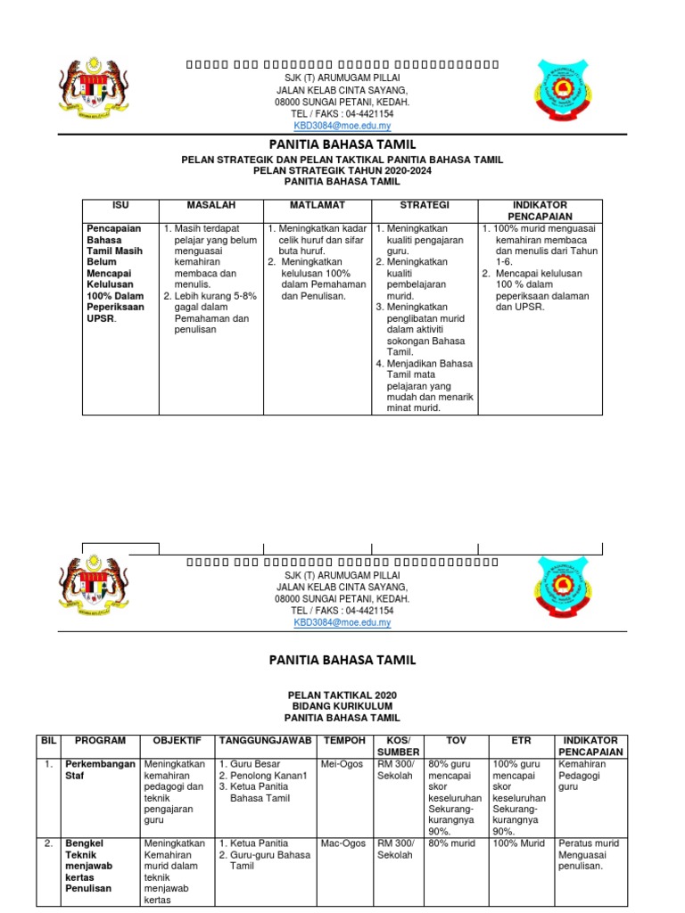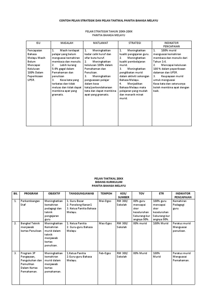 Doc Contoh Pelan Strategik Dan Pelan Taktikal Panitia Bahasa Melayu Sk Sulaiman Academia Edu